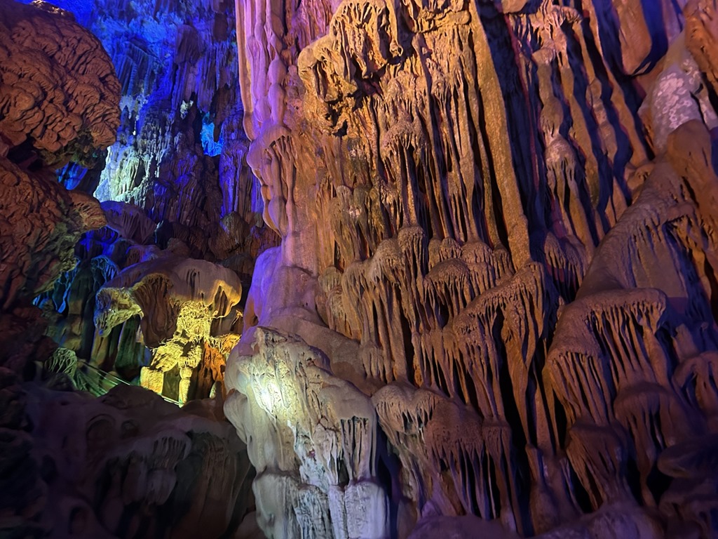 芦笛岩是内容丰富的溶洞,里面有各种怪石,组成了狮岭朝霞、红罗宝帐、盘龙宝塔、原始森林、水晶宫、花果山等景观。象鼻山,是桂林的城徽,也是 5A 级旅游景区,这座山的形状好像是一只饮水的大象。七星景区原称作七星公园,里面有山峰、岩洞、建筑等等景观,包括我们去的桂海碑林(包括相应的博物馆),以及我觉得最有意思的 “猴山”——里面大约有几百只自然繁育的野生猕猴,不过有很多游客都会喂它们。